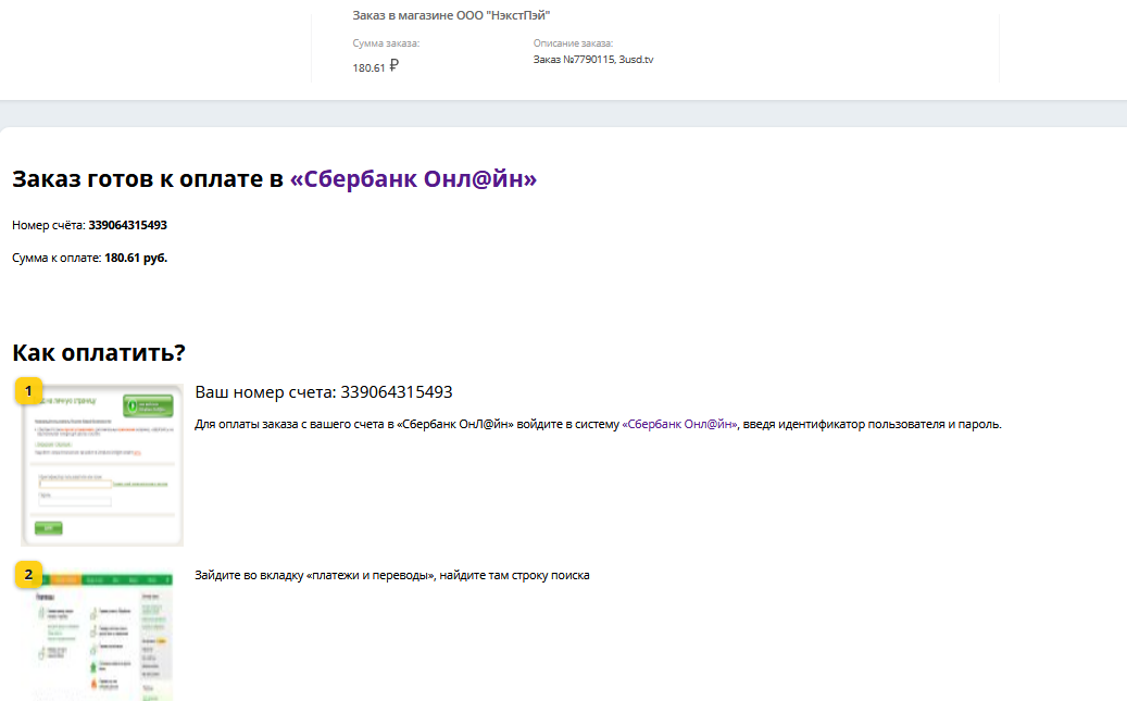 NextPay далее Сбербанк Онлайн
